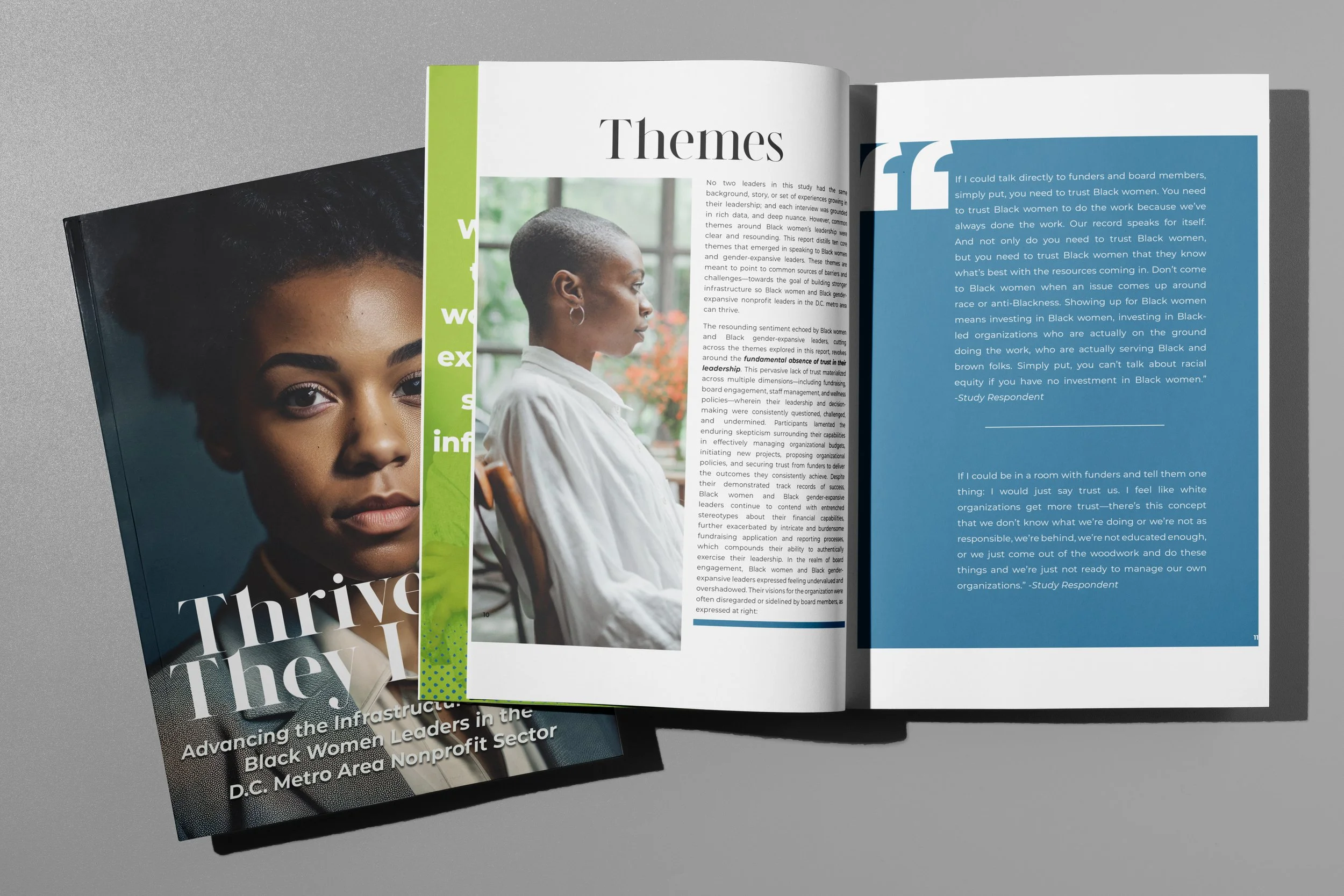 Washington Area Women’s Foundation tasked KDF Strategies to conduct research on the specific challenges that Black Women face in leadership positions in the workforce as a part of their larger Black Women and Gender Expansive Leadership Project. I was tasked by KDF strategies to layout the extensive research in a digestible but visually appealing way. Click the thumbnail below for the full pdf.